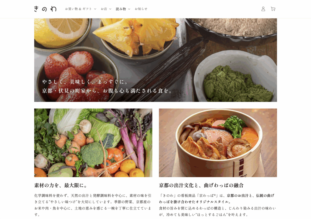 京都・伏見の地にて、四季折々の京の食文化を伝える「きのわ」様のオンラインショップおよびレストランのwebサイトを制作いたしました。